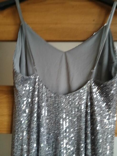 Sprzedam sukienkę. Szerokość pod pachami na płasko 40. Długość 110 cm. Z boku delikatne rozcięcie 37 cm.